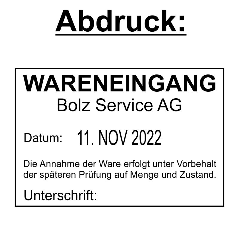 Stempel für den Wareneingang mit Firmennamen